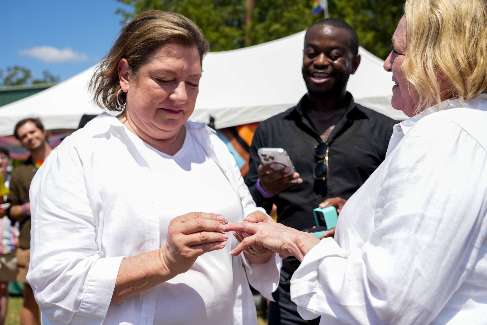 21年間一緒に過ごしてきたカップルの一組は、政治的気候が結婚への後押しになったと語った。「私たちはずっと一緒にいると知っていました。 でも、間違いなくそれがきっかけになりました。ライセンスとリング、そして4日間の準備があれば、結婚できます。」とレスリー・ラスオーサは述べた。