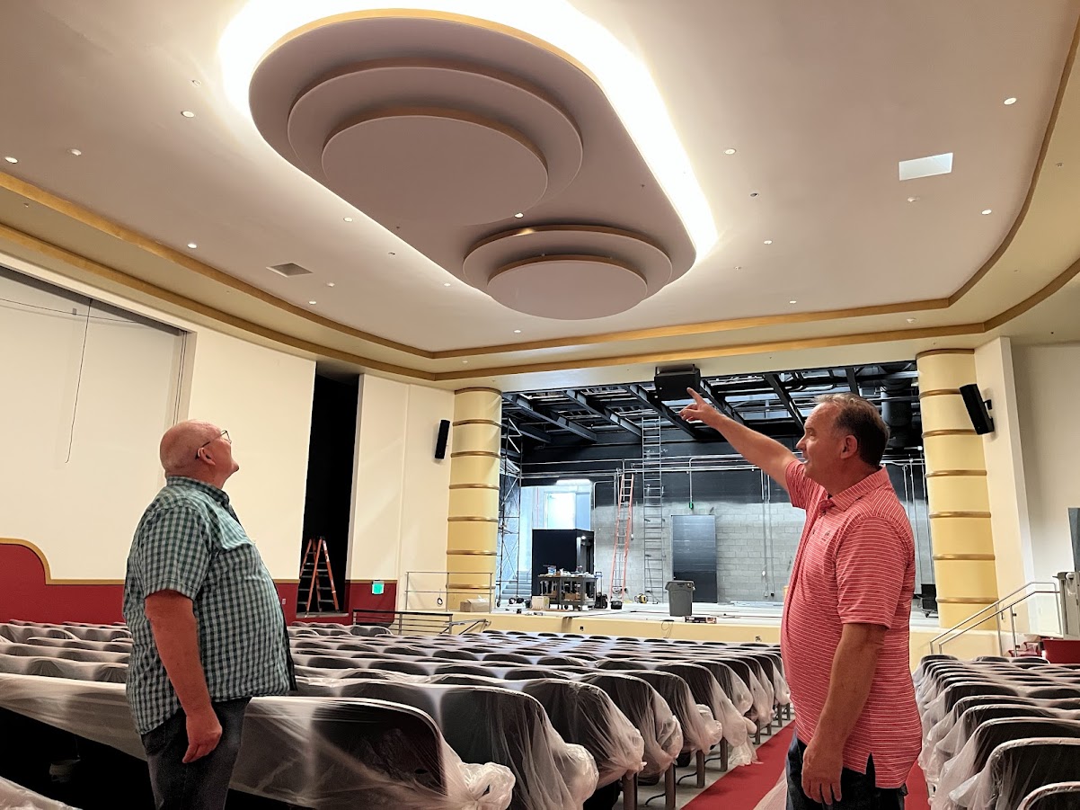 内部には、段差のある座席、修復された建築柱、エアを循環させるオリジナルの天井ディフューザーが今も機能している。