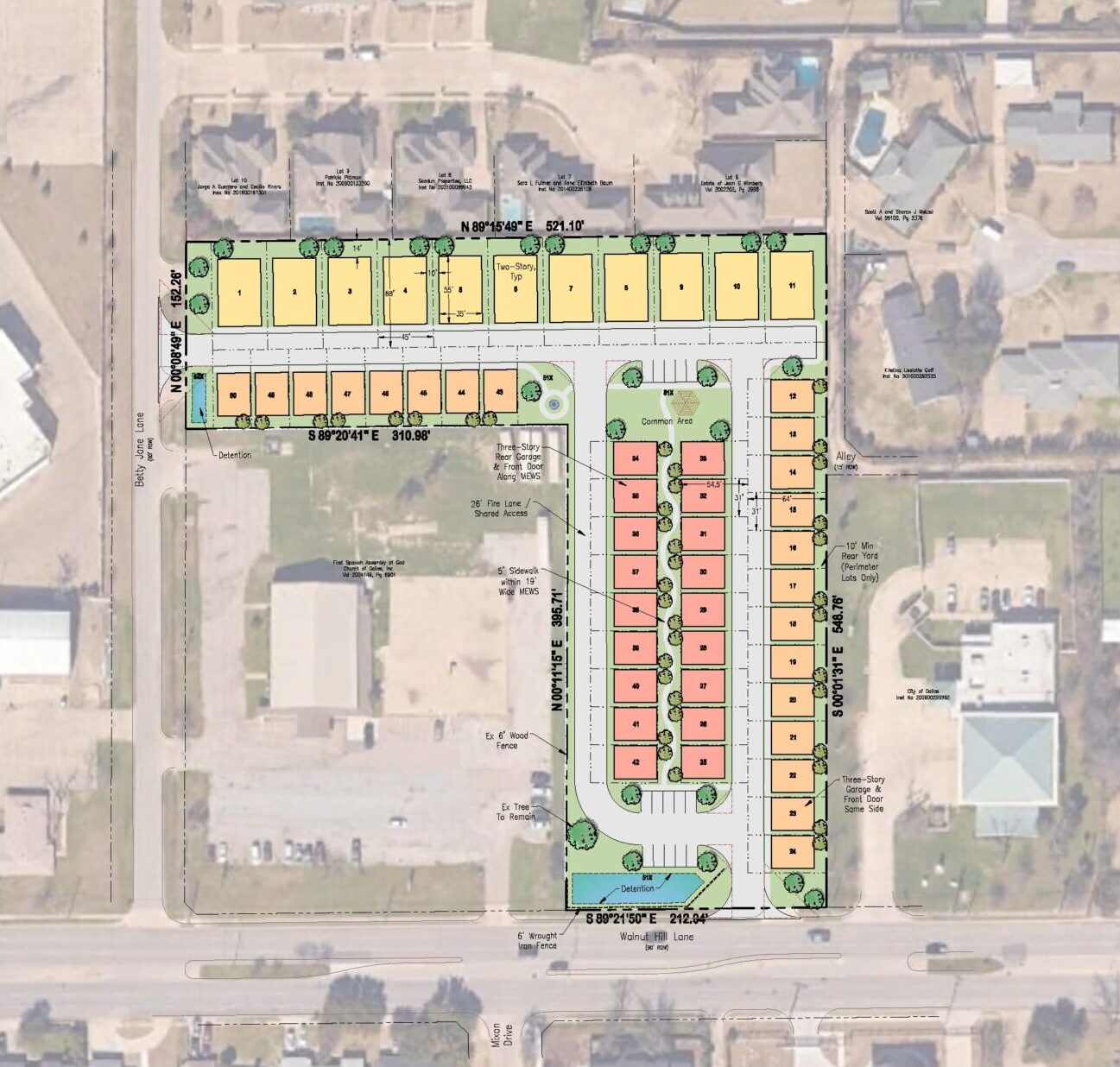 ダラスの開発業者メフダッド・モアイエディが率いるクリセント・エステート・カスタム・ホームズは、この土地を50棟のシングルファミリーパティオホームの開発を検討しています。