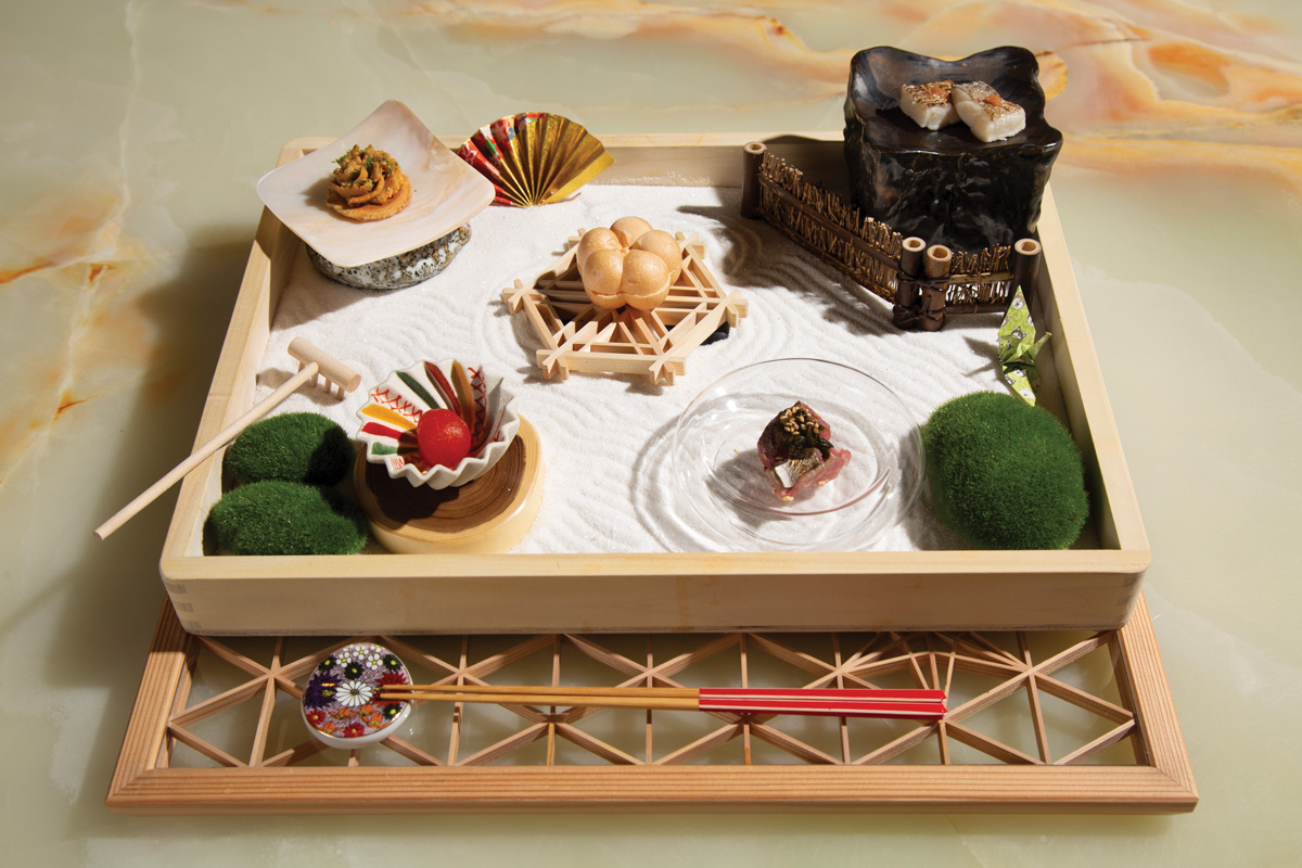私たちの旅は京都から始まり、個人用「禅庭」のトレイが提供された。