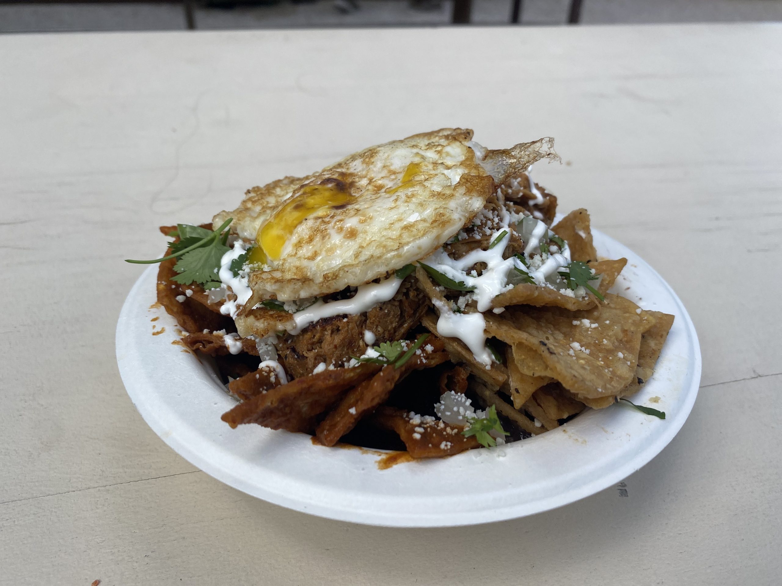 チラキレスは、チップス、豆、卵、サルサ、鶏肉が組み合わさったボリューム満点のブランチメニューで、メスカルマルガリータやテキーラソーダの後のリフレッシュに最適です。