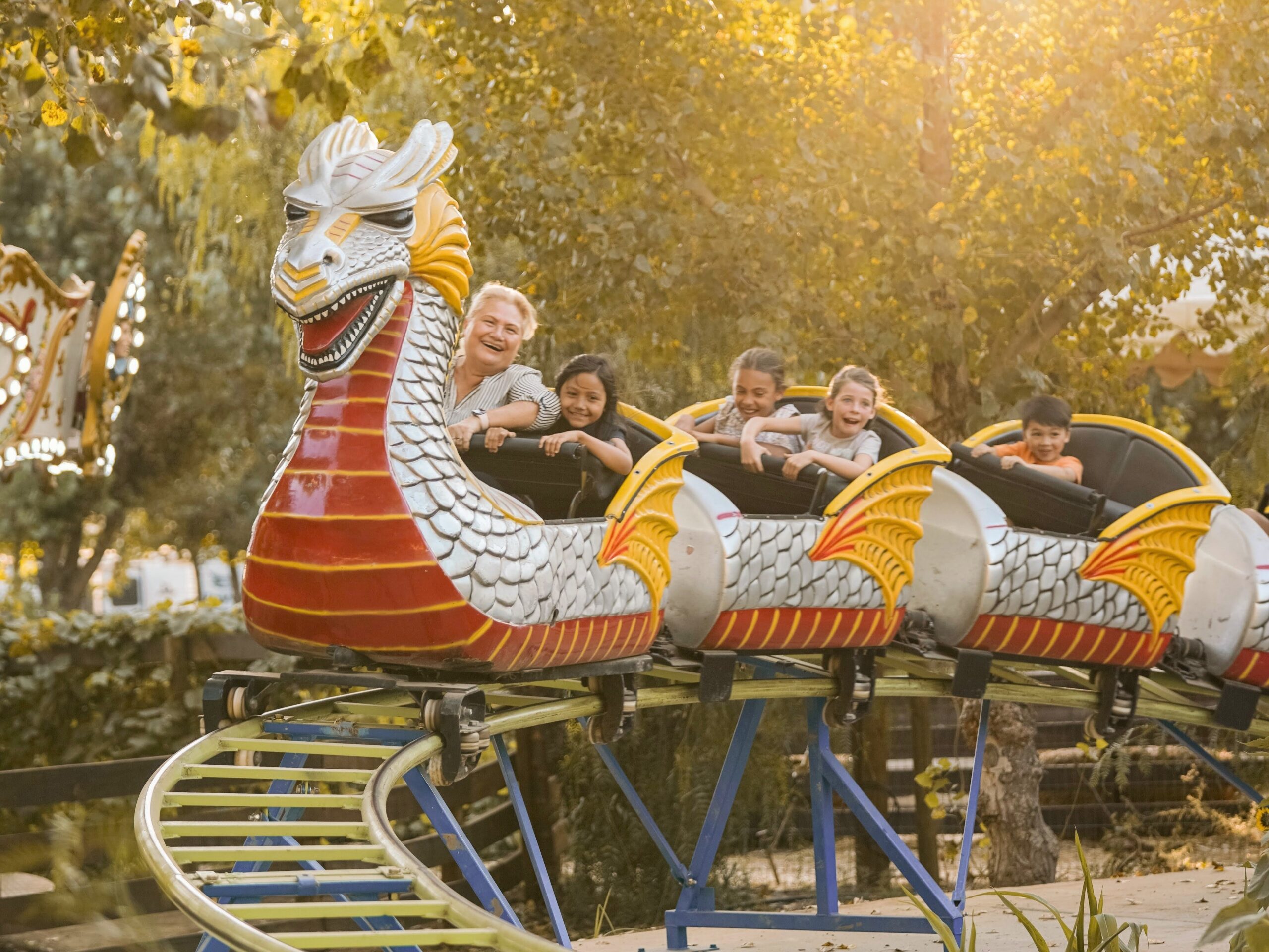 合計で、家族が楽しむことができる70以上の乗り物とアトラクションがあります。 私の子供たちは特にカーニバルスタイルの乗り物が好きで、もちろん、パッチを見下ろす観覧車にも乗りました。 見晴らしは素晴らしかったです。