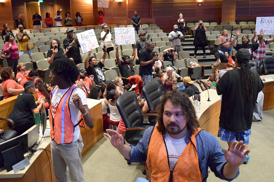 抗議者グループは、議題に関するコメントの申し込みを行い、キリン・ルイス氏や警察改革に関する議論に逸脱することがありました。これにより、会議に参加しようとする市民に対して不利益をもたらしていると、バーガン議員は述べています。