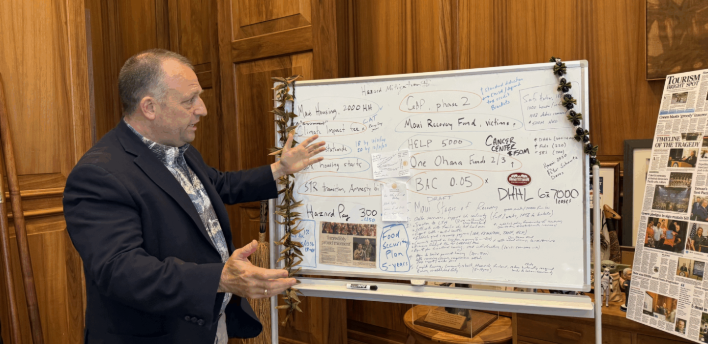2023年8月に発生したマウイ州の山火事は、102人の命を奪い、ラハイナの多くを破壊しました。その結果、グリーン知事のオフィスは被害者救済基金を設立し、ラハイナの近くに数百のモジュラー住宅を構築しました。