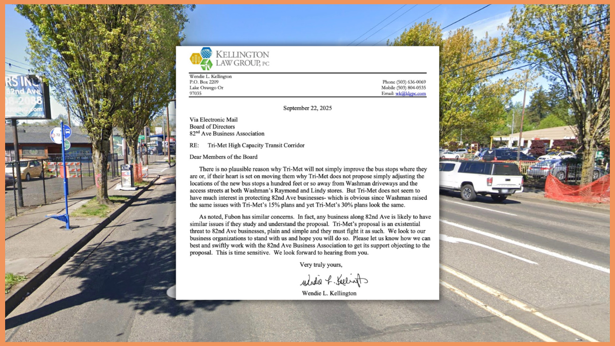 公共記録請求を通じて、BikePortlandはトライメットに提出された2通の反対書簡を入手しました。いずれの書簡も82丁目のビジネスオーナーを代表する法律事務所からのもので、トライメットが提案を変更しない場合、法的措置を取る意志があることが明らかにされています。