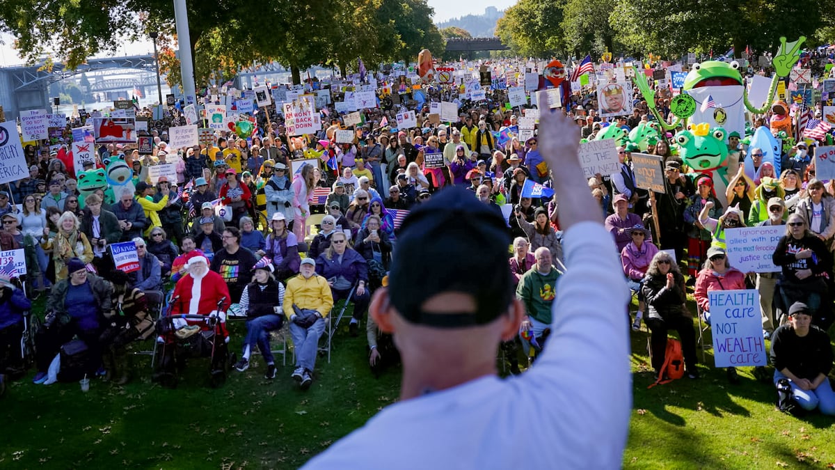 土曜日に行われた「No Kings」抗議では、数万人が平和的にポートランドの街を行進しました。