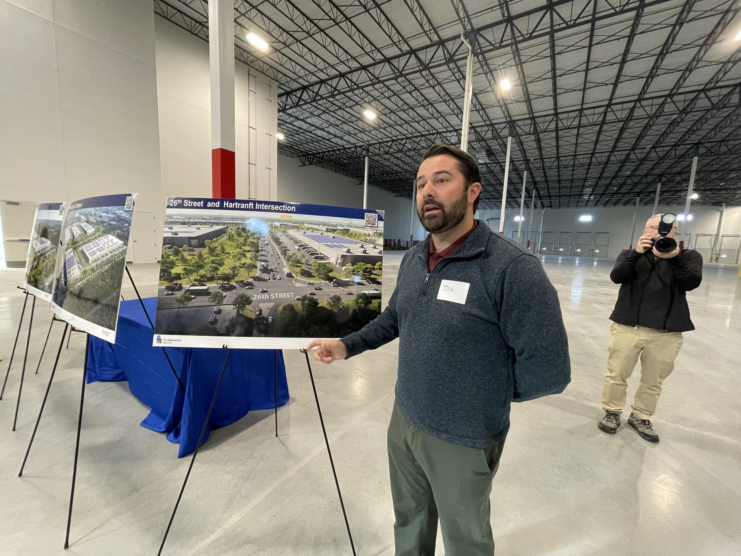 南フィラデルフィアのベラウェザー地区で、325,000平方フィートの新しい倉庫が建設され、概念図が訪問者に展示されました。HRPグループのシニアプロジェクトマネージャー、ジョー・コレルフリは、この広大な空間について説明しました。