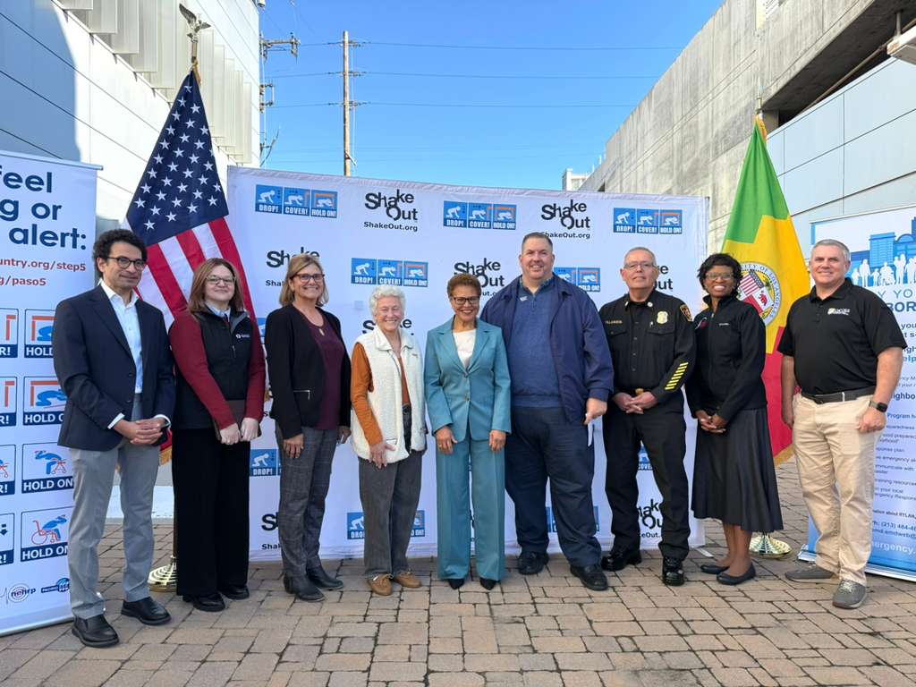 「今年のシェイクアウトデーは、ロサンゼルス市内で市民が仕事場や学校、自宅で地震訓練を行う日であり、緊急事態に安全を確保するために取れるアクションを強調するための重要な日です。」