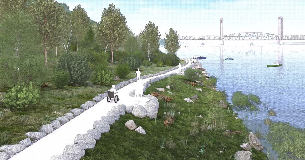 更新されたデザインのビジョンは、人々がこの場所で川、土地、そしてこの土地の歴史と安全に接続できる場所を創出し、独自の自然システムを保護して再生することです。