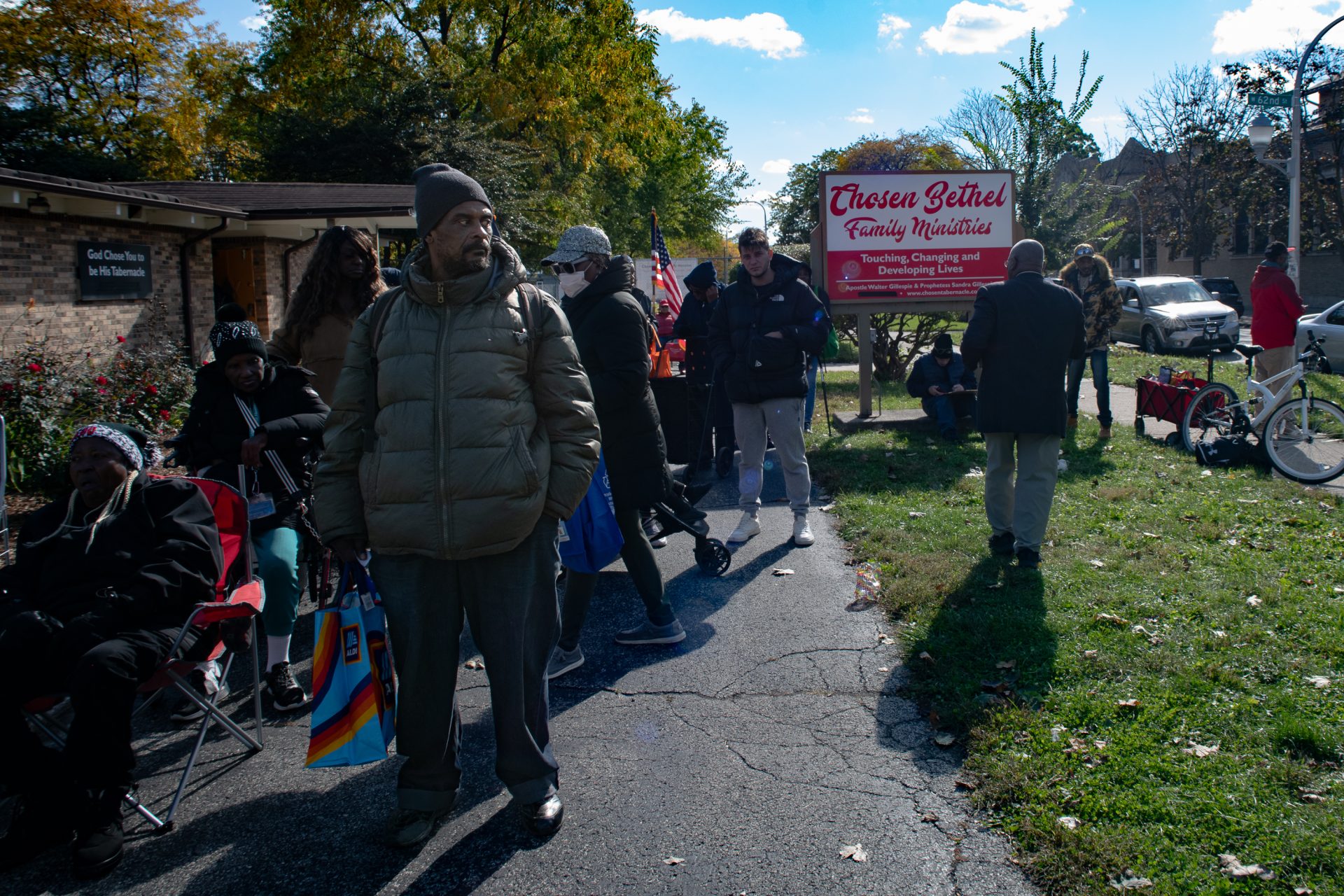 彼はシカゴのサウスサイドにあるベテル・ファミリー・ミニストリーズのフードパントリーで、毎週一度訪れるため列に並んでいました。