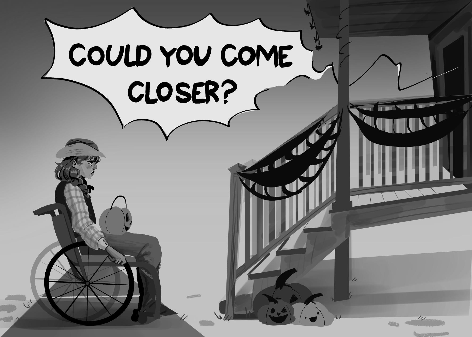 ハロウィンパーティの招待はシンプルに感じられた。しかし、私が何を着るかを決める前に、車椅子がドアを通れるかどうかを考慮する必要があった。
