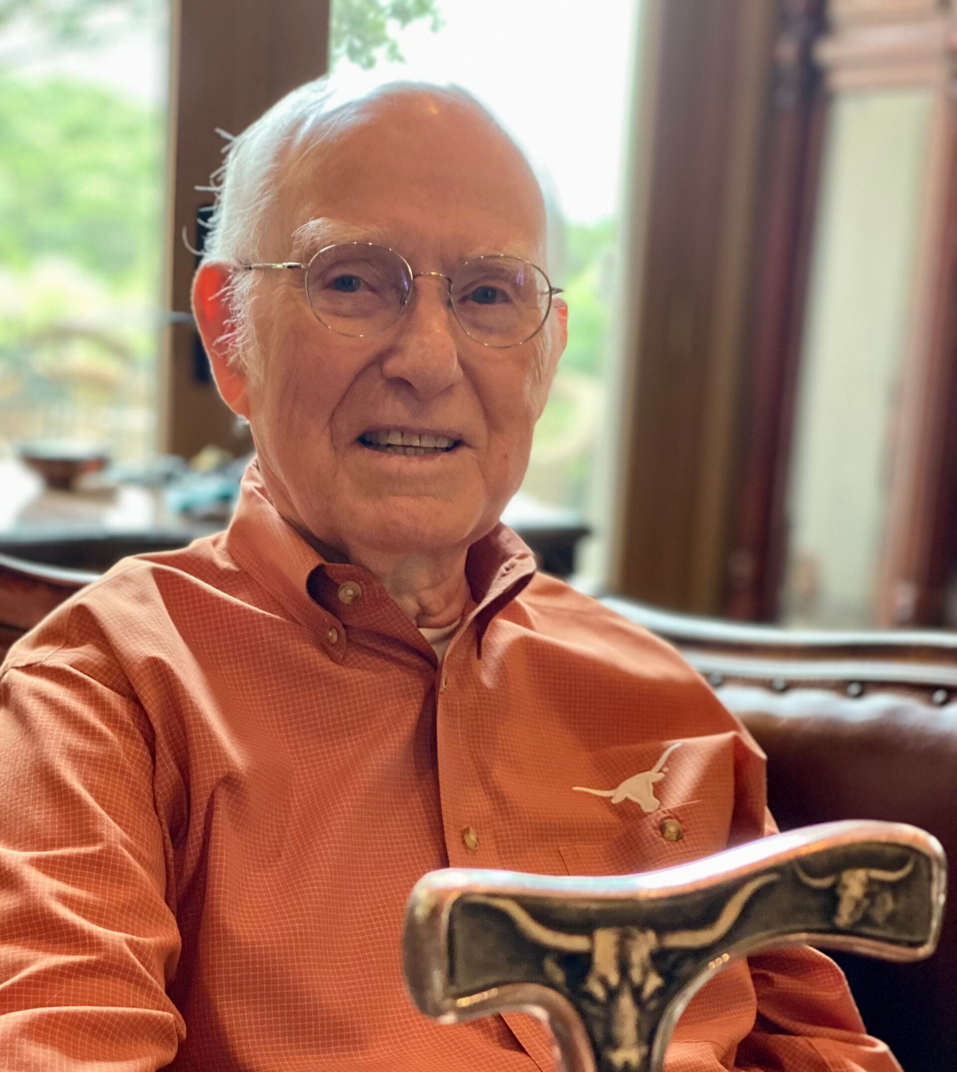 隣には、子供たちからの贈り物である、シルバーのハンドルにテキサス・ロングホーンの彫刻が施された手作りの杖が寄りかかっている。