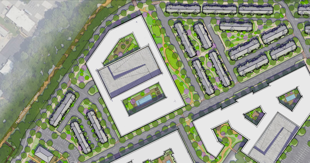 さらに、このサイトは1.3マイルのピーチツリークリークグリーンウェイに直接接続されており、将来的にはアトランタ・ベルトラインやバス400を通じて南にリンクし、ドローヴィルやチャンブリーなどの他の都市とも連結される予定です。